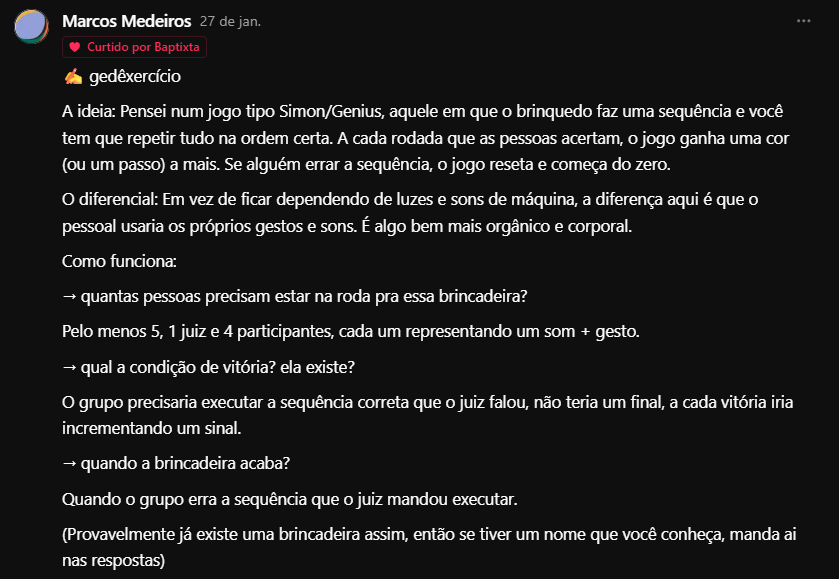 olha só uma das sugestões de um dos gedês aqui da newsletter sobre o tema de criar uma brincadeira de roda ↓